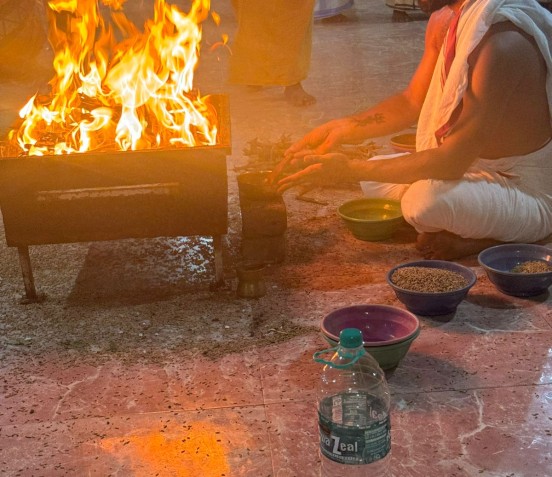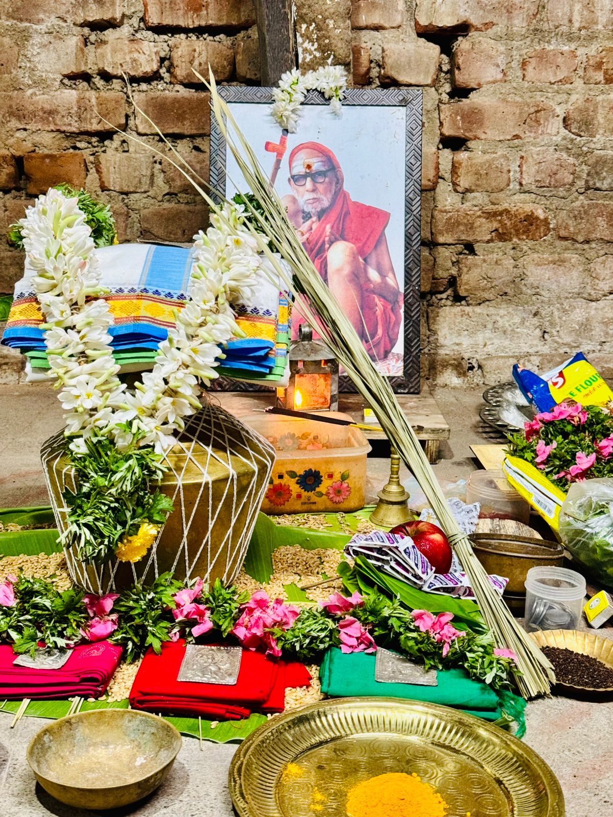 Setting Up a holy yagashala : A clean, purified area is chosen to set up the pooja and homam and other things.